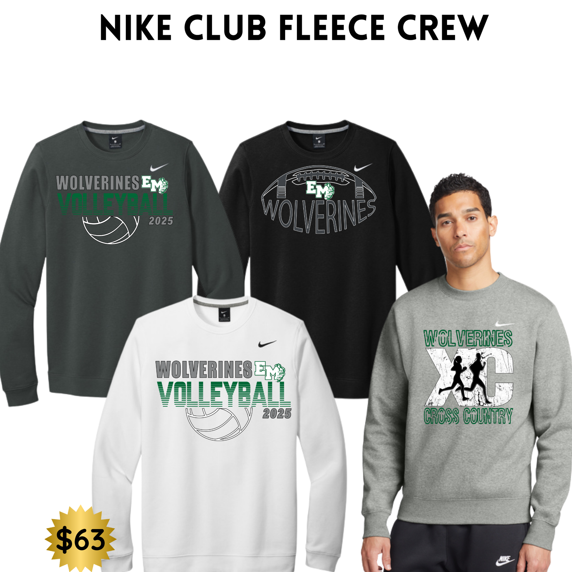 EMAYS25 Nike Unisex Club Fleece Sleeve Swoosh Crewneck